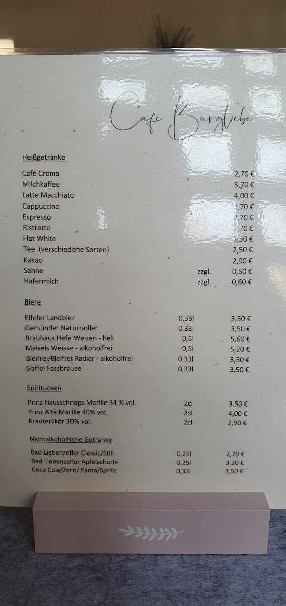 Café Burgliebe Menu